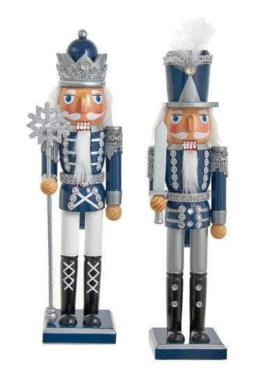 These 15-inch dark blue and silver nutcrackers from Kurt Adler are a festive addition to any home or holiday décor. This assortment features two nu...
