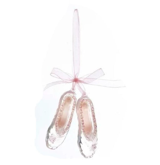 These clear pink ballet shoes ornaments from Kurt Adler are a great addition to your home décor! This assortment features ballet shoes in a dark pi...