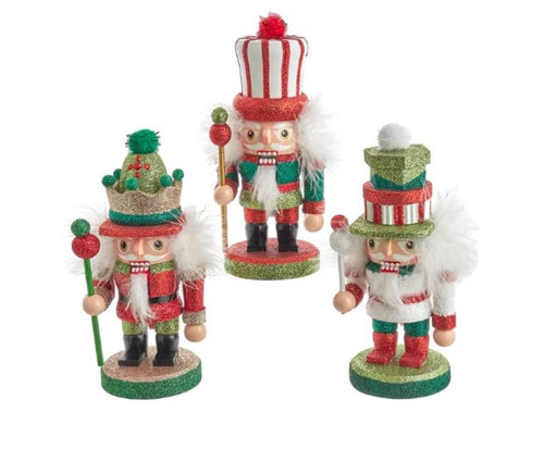 These 7-inch red, white and green nutcrackers are a wonderful addition to any holiday decor. This assortment features three nutcrackers, each are d...