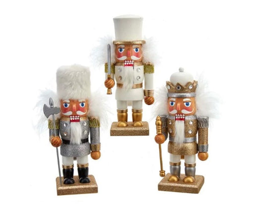 This 9-inch soldier assortment includes three nutcrackers in gold, silver and white. Each has clear gem accents and is standing on a gold glittered...