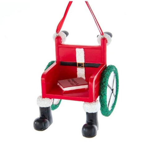 This Santa inspired wheelchair ornament from Kurt Adler is a festive addition to any holiday décor or Christmas tree. It features a naughty and nic...